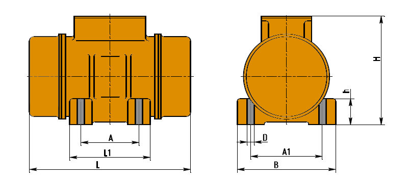 Тип вибратора L B H L1 A A1 D h