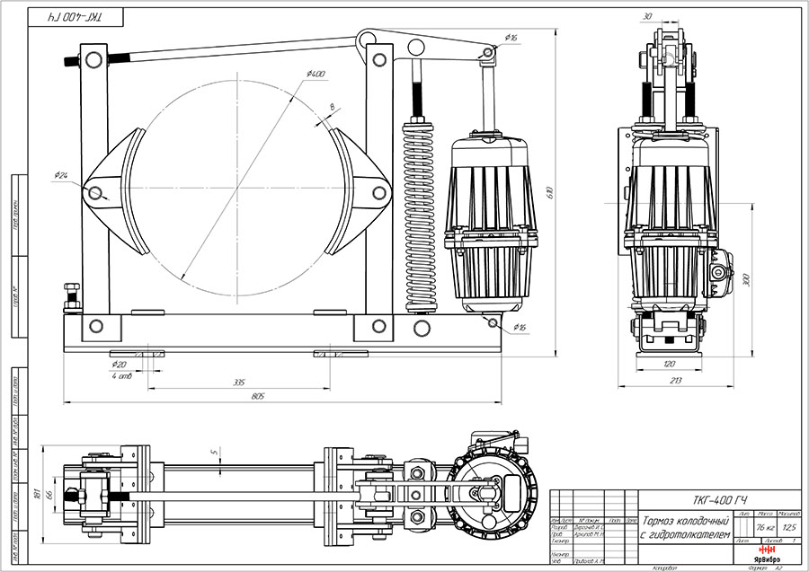 Тормоз колодочный в сборе с толкателем ТКГ-400 отзывы